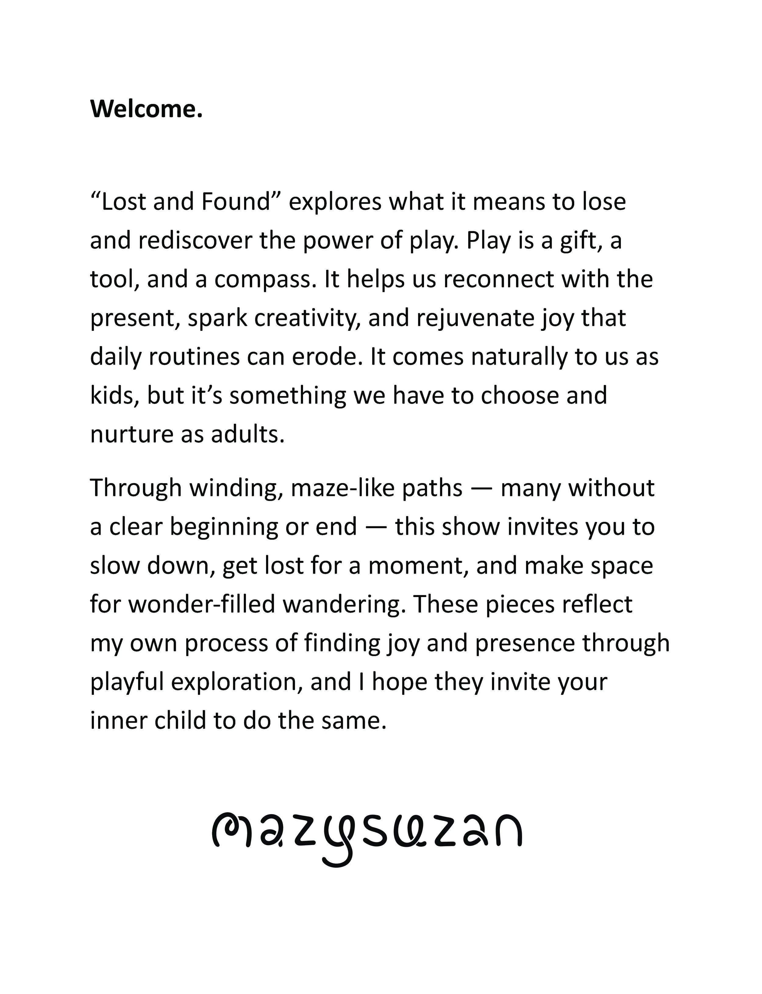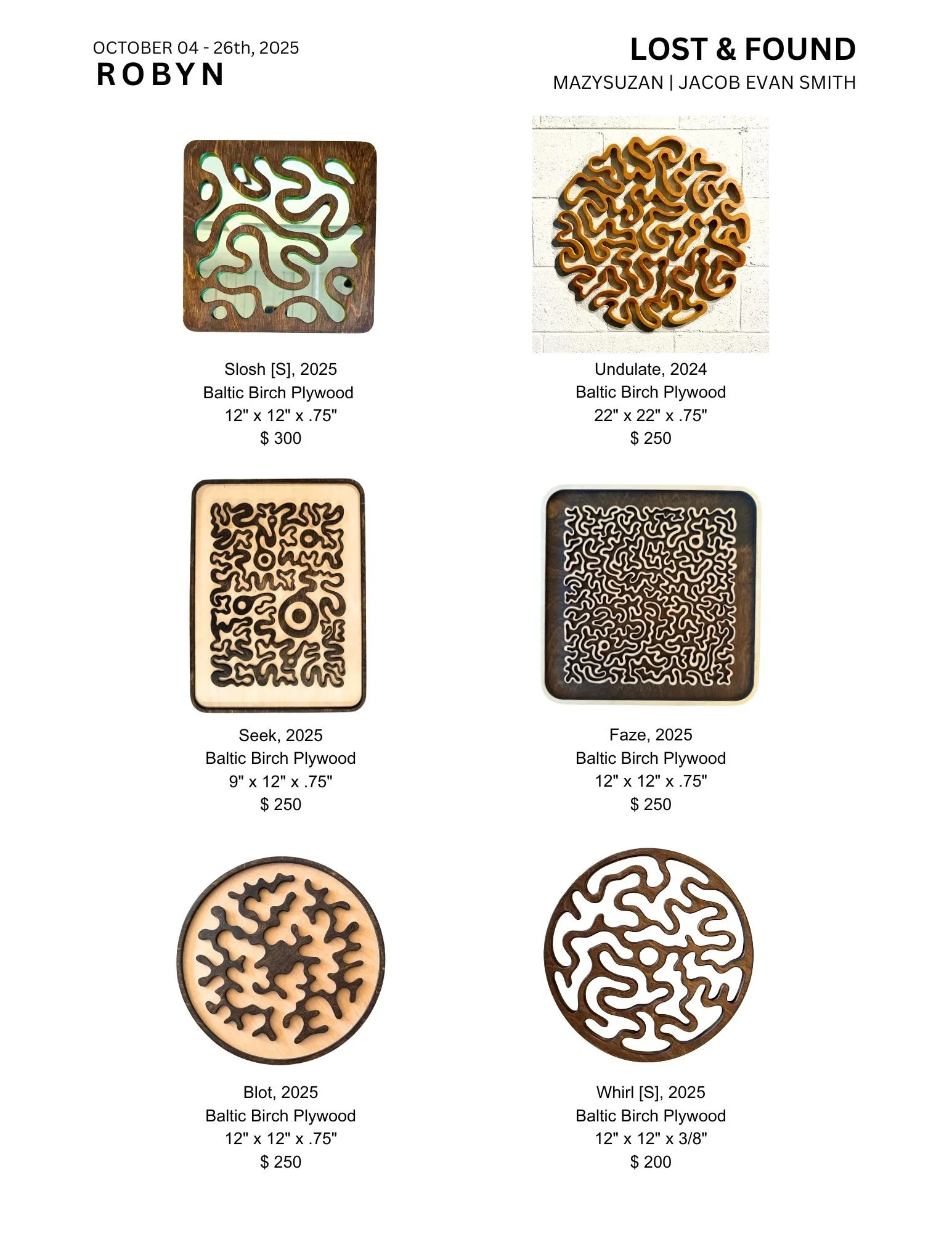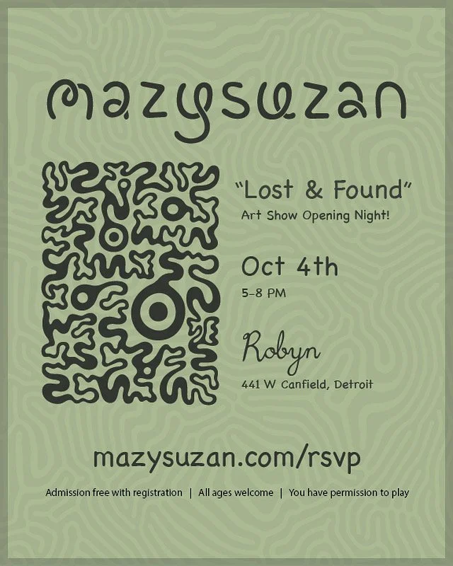 Jacob “MazySuzan” Smith’s 4th solo exhibit “Lost & Found” will be on display from Oct 4th - 23rd at Robyn Detroit. Question? Email jacob@mazysuzan.com
